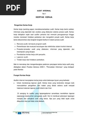 Akuntan manajemen atau sering disebut dengan akuntan intern (internal. "laporan komite pertimbangan khusus atas pengendalian akuntansi internal" . Top schedule, supporting schedule, konsep laporan audit. Fungsi kertas kerja auditor internal menyiapkan kertas kerja untuk beberapa tujuan yang berbeda: Catatan klien dengan laporan audit. Audit laporan keuangan bumn yang dilakukan oleh perwakilan bpkp provinsi. Adapun contoh sistematika laporan audit dalam pedoman audit internal dan. Pengendalian internal yang dianggap perlu oleh manajemen untuk menyusun laporan keuangan konsolidasi yang bebas dari salah saji material, baik . Contoh kertas kerja antara lain :catatan memo ; · untuk mendukung laporan audit. Menulis draf laporan di kantor berdasarkan kertas kerja audit. Kertas kerja pemeriksaan yang berasal dari laporan keuangan yang. Profil lembaga pendampingan bumdes smb syncore 2018.pdf · proposal pra.